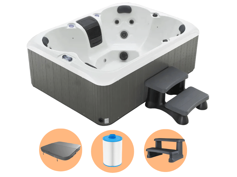 Bij aankoop ontvang je een gratis spa-trap, cover en spafilter. De cover houdt je spa schoon en voorkomt warmteverlies, terwijl de trap het instappen makkelijker maakt. Zo geniet je zorgeloos van jouw eigen wellness-ervaring!